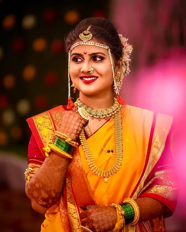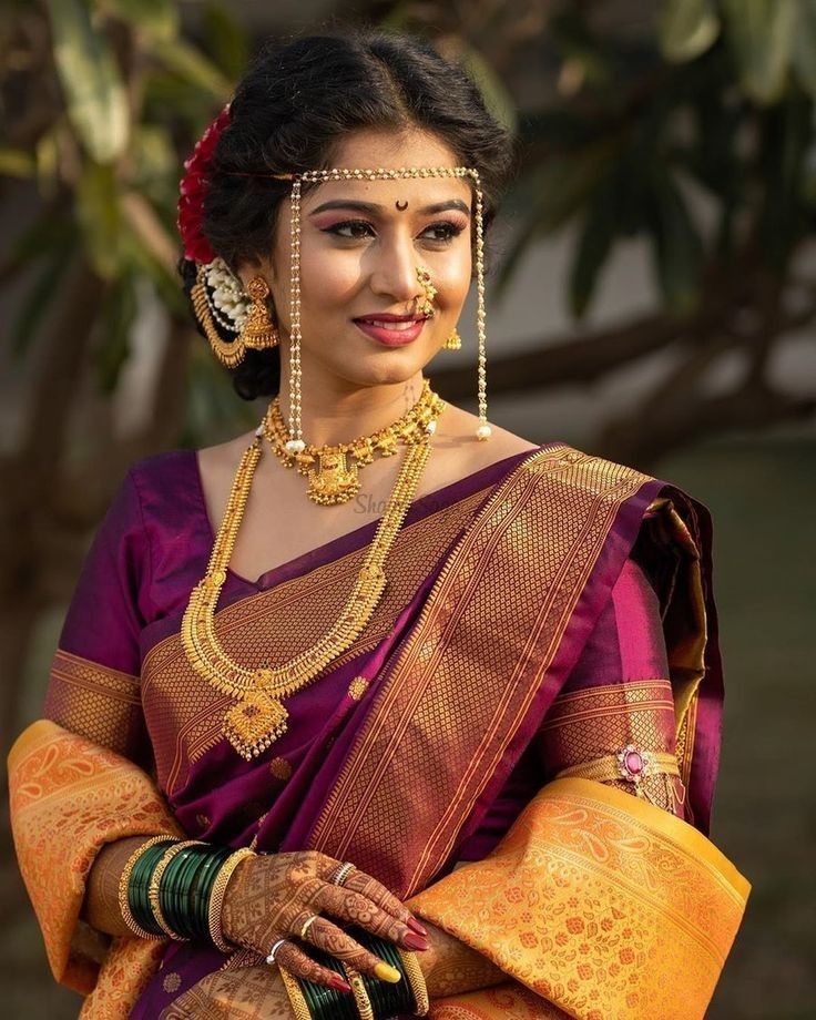 Jewellery is an important part of wedding ensembles. One of the most memorable ornaments in a Maharashtrian wedding is the Mundavalya, a delicate string of pearls worn on the forehead. Worn by the bride and the groom, it symbolises their togetherness and unbreakable bond. Some contemporary Mundavalyas are also made from jasmine flowers.